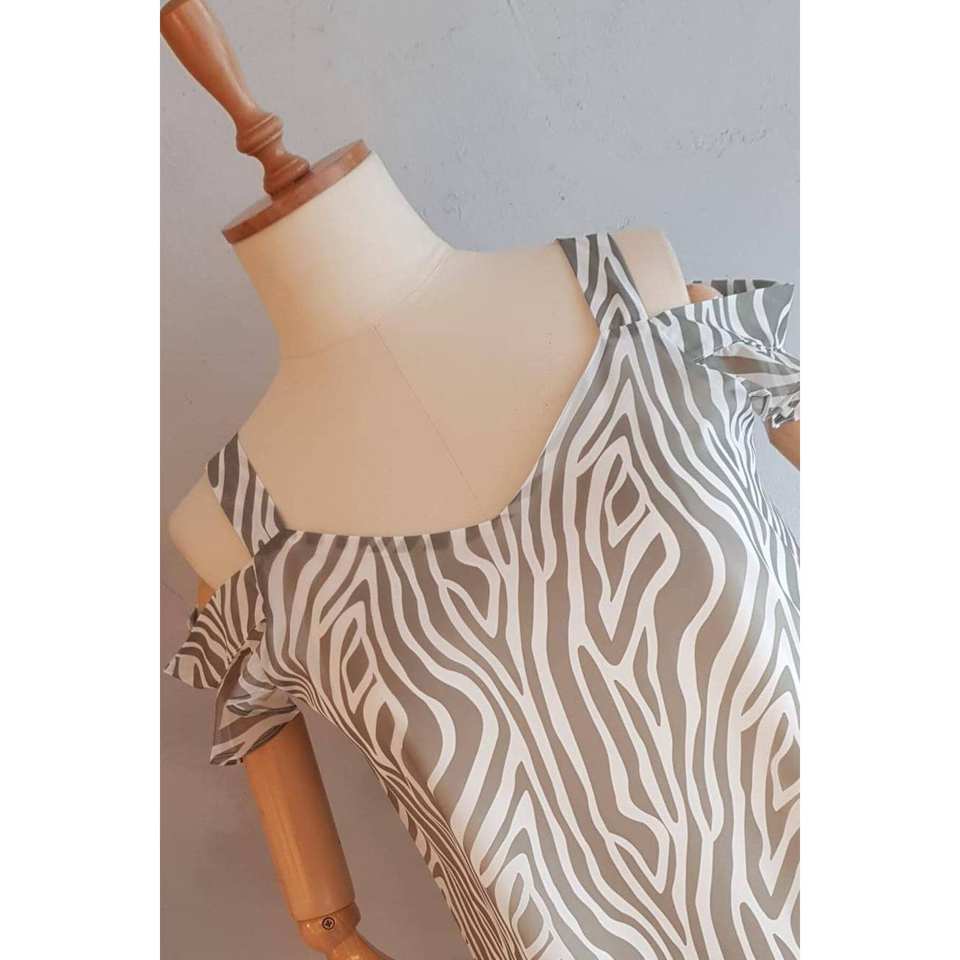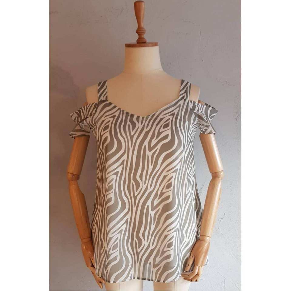 เสื้อเบลาส์แขนสเปนลายเสือดาวมีปกตั้ง