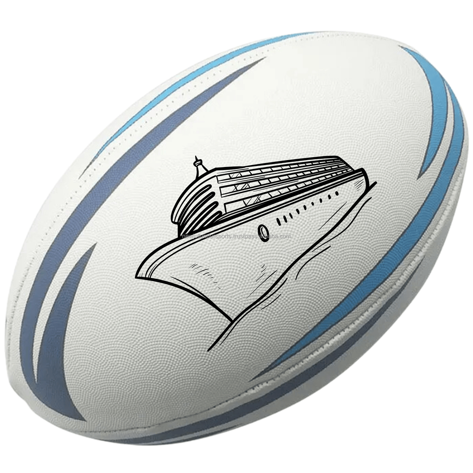 ลูกรักบี้ยูเนี่ยนบอลขนาด5ลูกสำหรับฝึกการจับคู่แบบมืออาชีพโลโก้ตามสั่งหนัง PU ทนทานขายส่งเป็นกลุ่มอุปกรณ์รักบี้ลีก