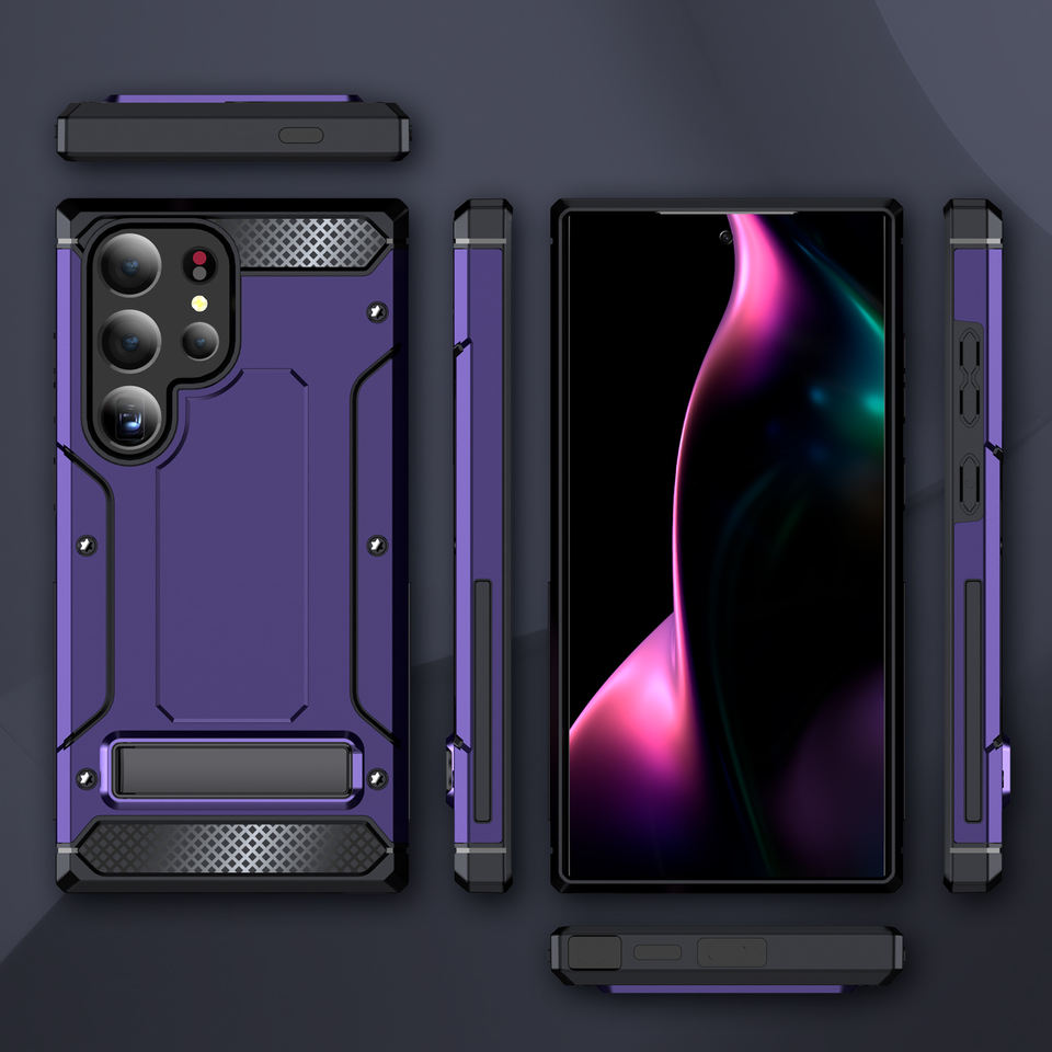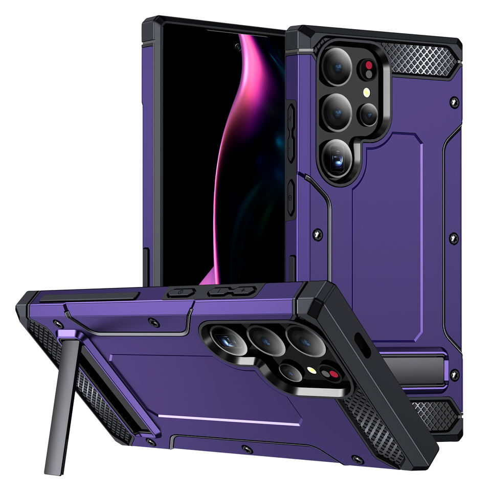 เคสโทรศัพท์มือถือ TPU + PC ที่แข็งแรงทนทานพิเศษตามหลักสรีรศาสตร์พร้อมขาตั้งโลหะ & กันกระแทกสำหรับ S24/23/22อัลตร้า & อื่นๆ