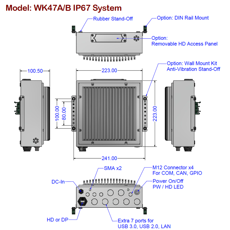 อุณหภูมิในการทำงาน TDP 28W/TDP 15W: 65 °C/75 °CChasses WK47A /b