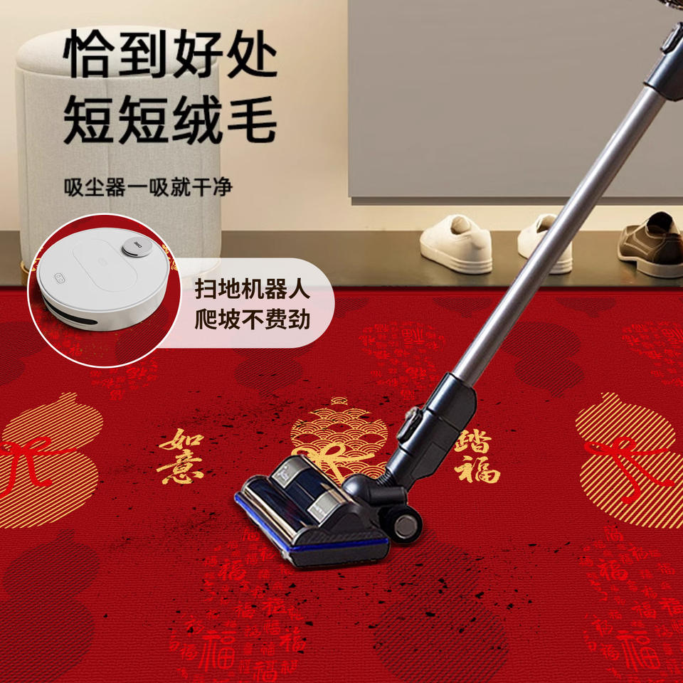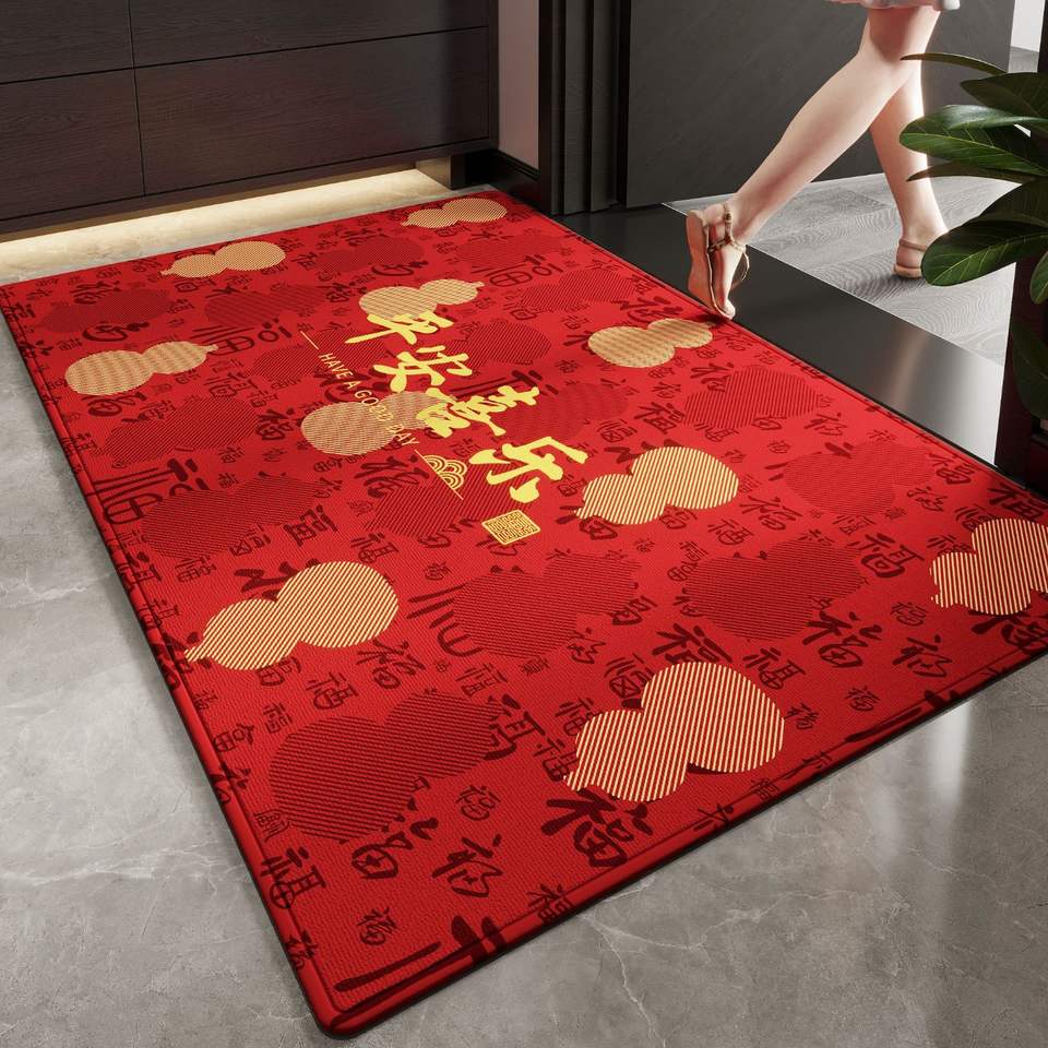 พรมเช็ดเท้ารูปสี่เหลี่ยมผืนผ้ากันลื่นสำหรับใช้ภายในบ้าน ลายรุ่ยหู รุยอี้ หูหยุน อันซี หงหยุน จุนฮวน สำหรับเทศกาลปีใหม่ สีแดง ทอแบบด้วยเครื่องจักร