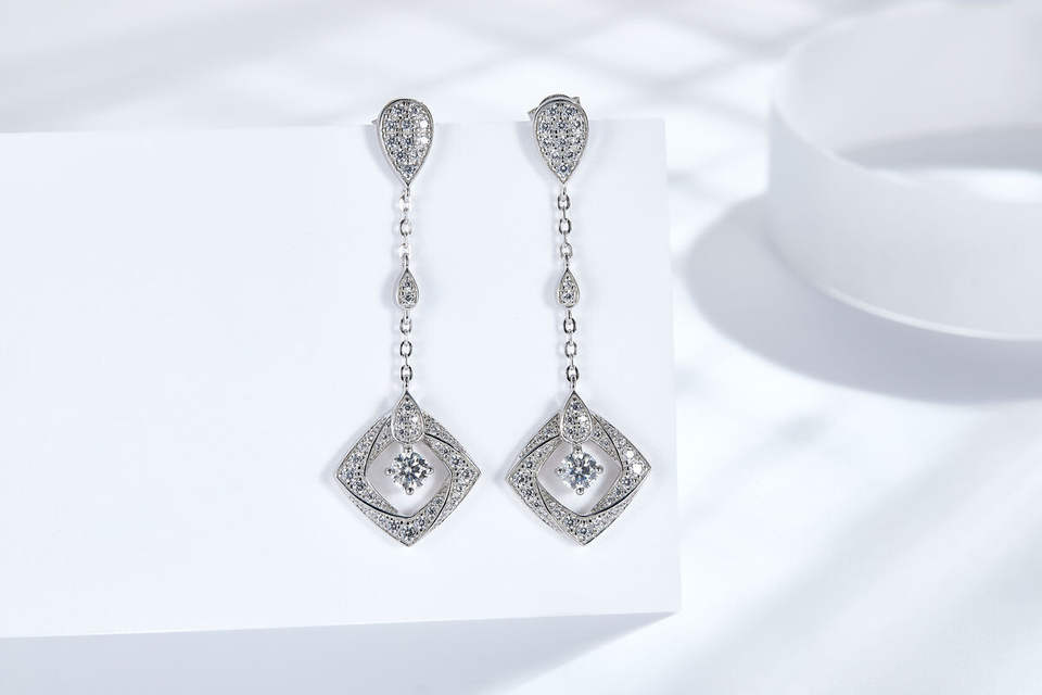 ต่างหูแบบห้อย Rui Zun รุ่น Unisex สำหรับฤดูร้อนปี 2024 ของขวัญสุดหรู ทำจากซิลิโคนและโลหะผสมดีบุก ประดับด้วยมอยส์ซาไนต์ทรงเหลี่ยมมรกต ชุบทองคำขาวและโรเดียม เหมาะสำหรับวันครบรอบ