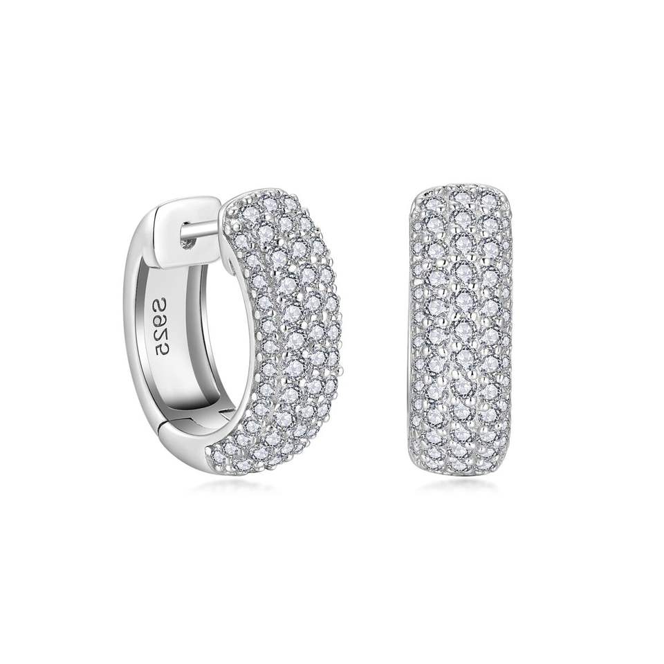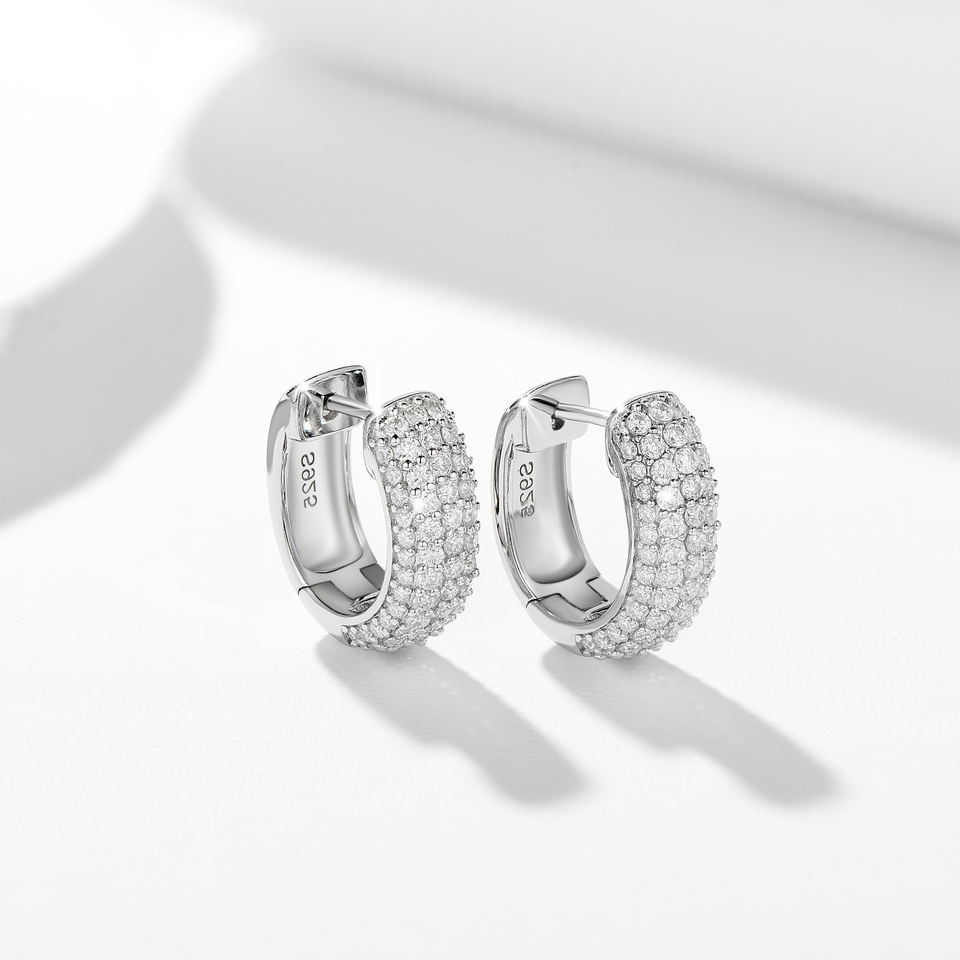 ต่างหูเงินแท้รุ่ยจวน คัฟ ประดับเพชรโมอิสซาไนต์ขนาดเล็ก