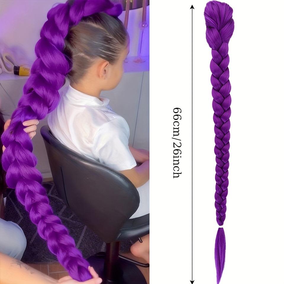 รูมิสีม่วงวิกผมถักเปียหางม้า 66 ซม. 140 กรัม ใยคาเนคาลอนผมสังเคราะห์ทนความร้อนสำหรับคอสเพลย์และสวมใส่ทุกวัน