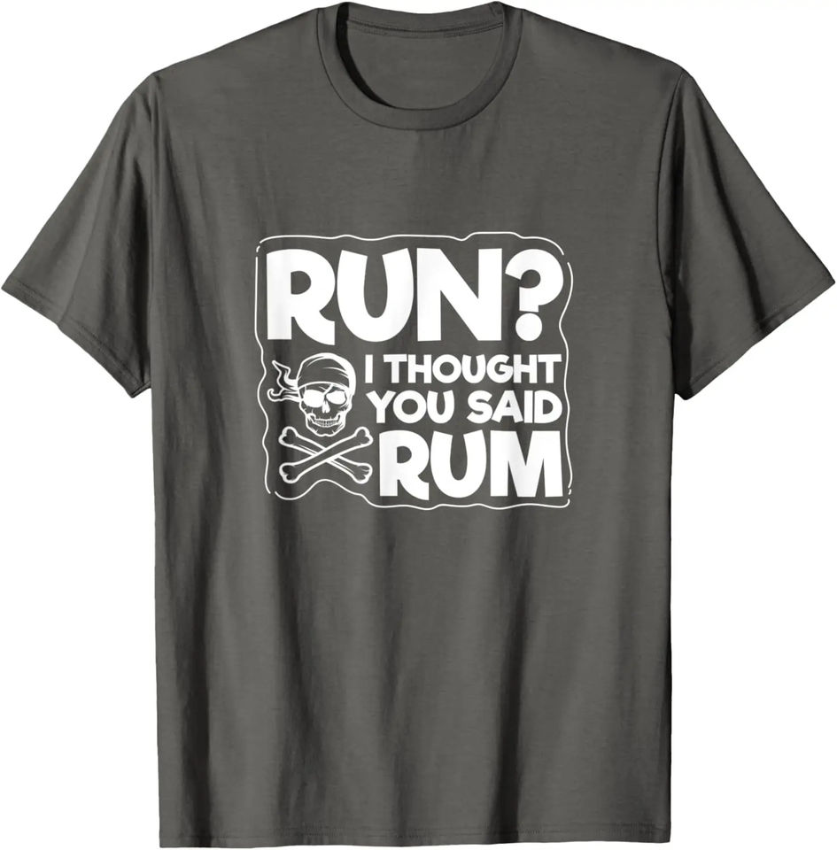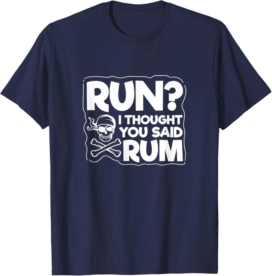 เสื้อยืดลายกราฟิกกะโหลกโจรสลัดตลกๆ สำหรับผู้ชาย ผ้าฝ้ายลำลอง รุ่น Run I Thought You Said Rum