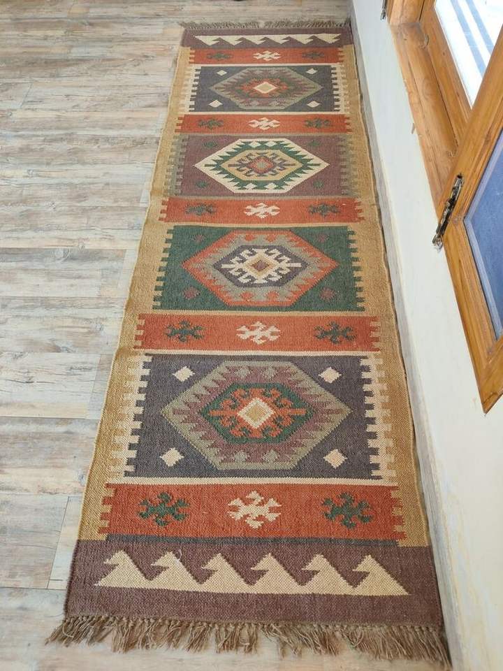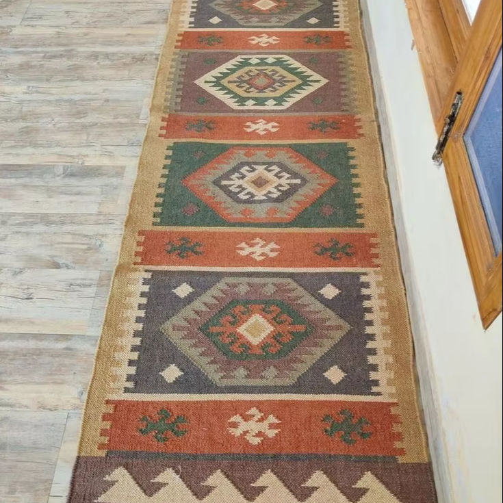 พรมปูพื้นในครัวแบบถักลายแบบชาวโบฮีเมียนกันลื่นดีไซน์แบบตะวันออกทรงเรขาคณิตแบบดั้งเดิมทอเทคนิคแบน