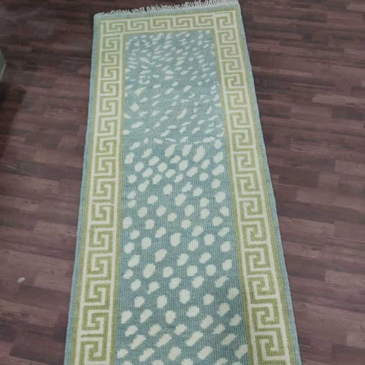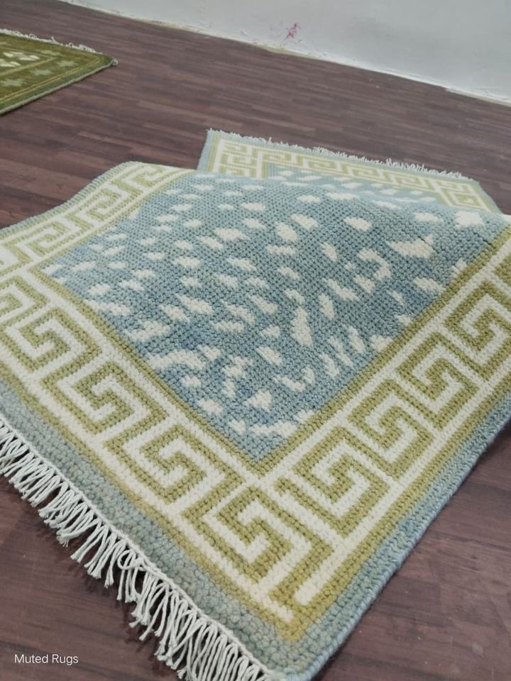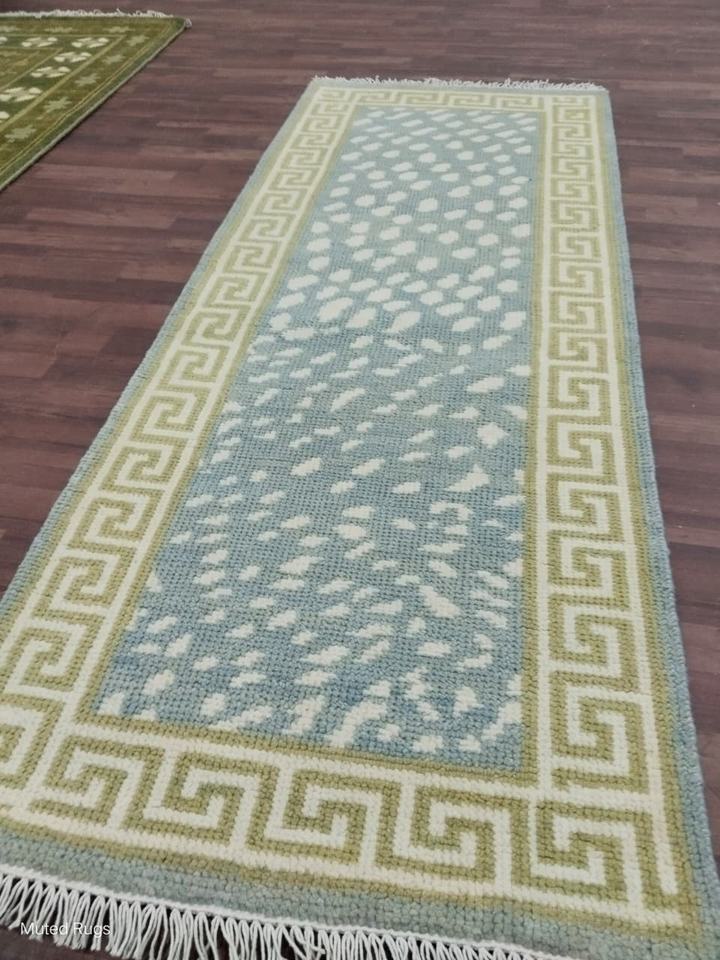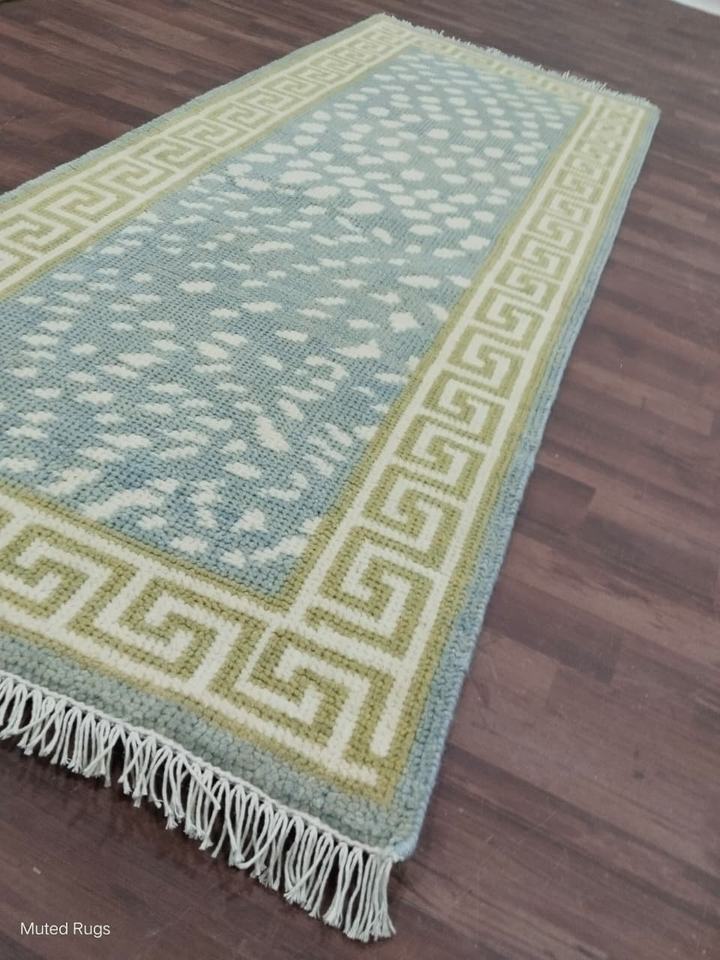 พรมพื้นที่ Runner Blue Wool: จุดนามธรรมทอมือ, ขอบกุญแจกรีก