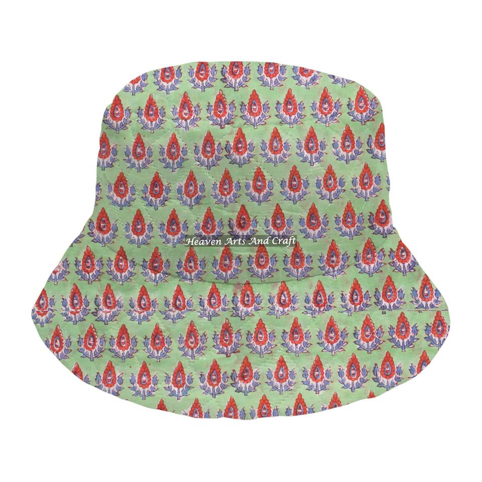 หมวกบักเก็ตผ้าควิลท์ลายพิมพ์บล็อกทำมือสำหรับนักตกปลาผู้ใหญ่ คุณภาพสูง
