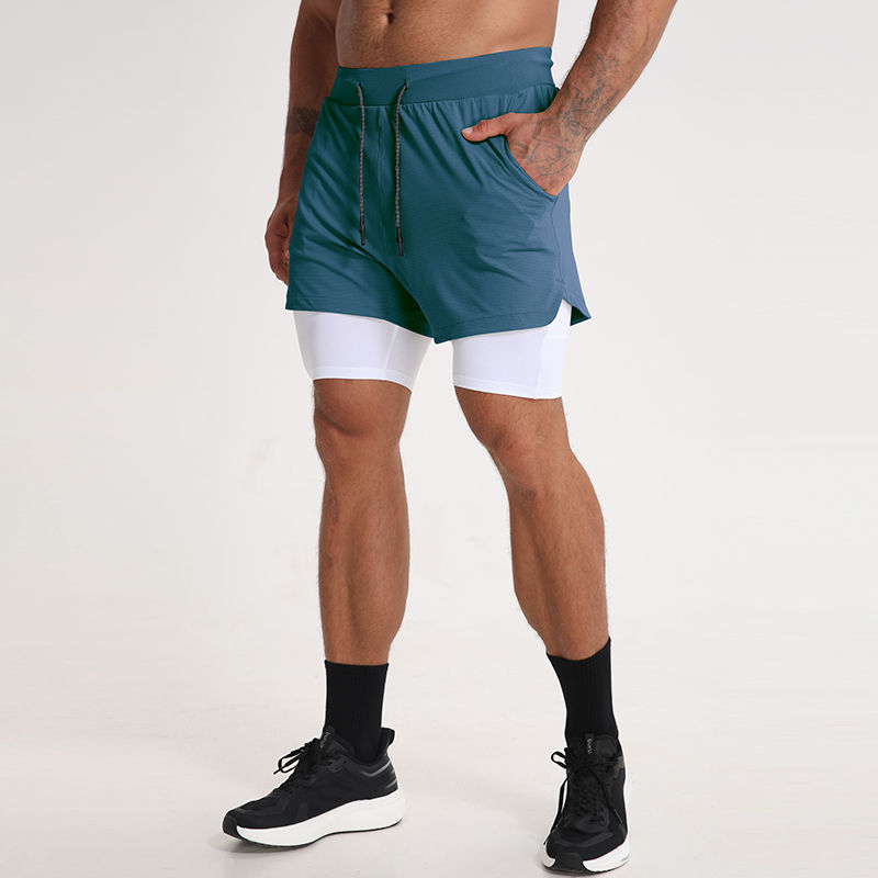 กางเกงขาสั้นออกกำลังกายเอวสูงสำหรับผู้ชายกางเกงขาสั้นสองชั้นพร้อมเชือกผูก