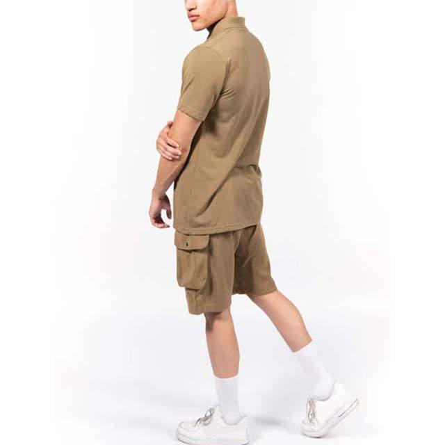 ชุดออกกำลังกายวิ่งจ๊อกกิ้งลายวินเทจ ชุดเซ็ตสองชิ้นสำหรับผู้ชาย เสื้อโปโลและกางเกงขาสั้นเข้าชุด