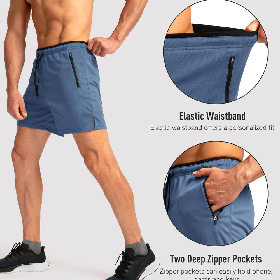 กางเกงวิ่งขาสั้นสำหรับผู้ชาย ฟิตเนส 100% โพลีเอสเตอร์ ปรับแต่งโลโก้ สติ๊กเกอร์ สี ลวดลาย ดีไซน์เฉพาะตัว กางเกงวิ่งขาสั้นผู้ชาย