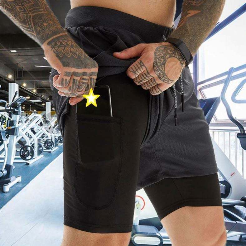 กางเกงวิ่งขาสั้นผู้ชาย กางเกงกีฬา 2 in 1 แห้งเร็ว สำหรับออกกำลังกาย ฟิตเนส วิ่งจ๊อกกิ้ง กางเกงขาสั้นฤดูร้อนสำหรับผู้ชาย