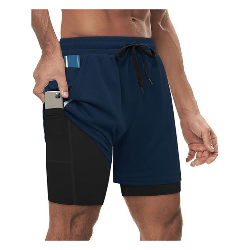 กางเกงขาสั้นผู้ชายชุดกีฬา 2 In 1 การบีบอัดจ๊อกกิ้งกางเกงสั้นสองชั้นกางเกงยิมฟิตเนสการฝึกอบรมกีฬากางเกงขาสั้น