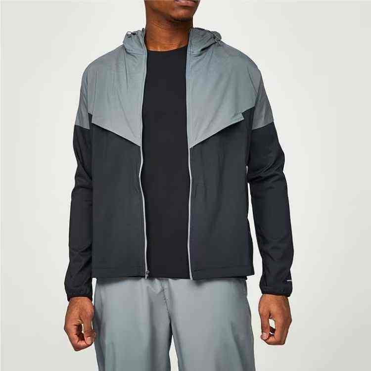 เสื้อแจ็กเก็ตกันลมวิ่งสำหรับผู้ชายชุดออกกำลังกายกันน้ำระบายอากาศได้ดีมีซิปบาง