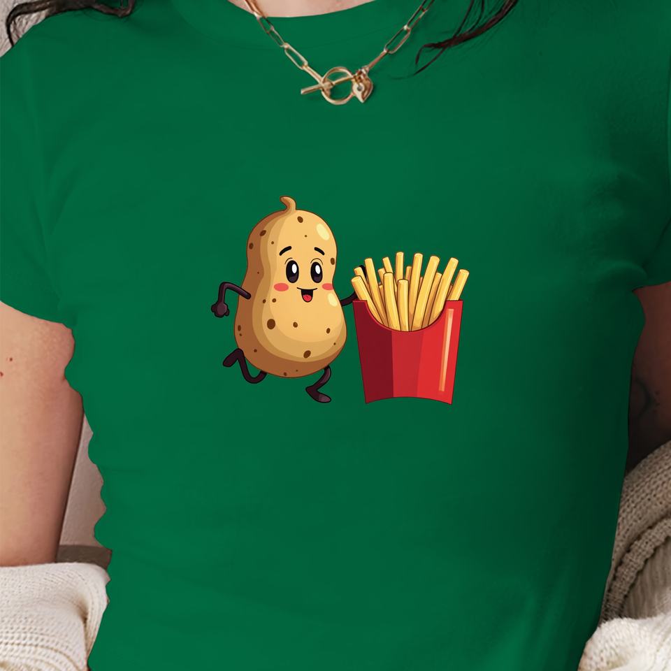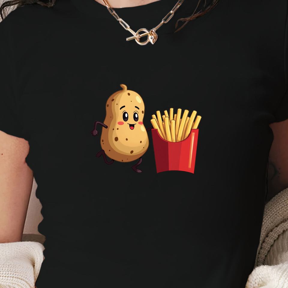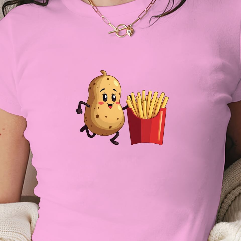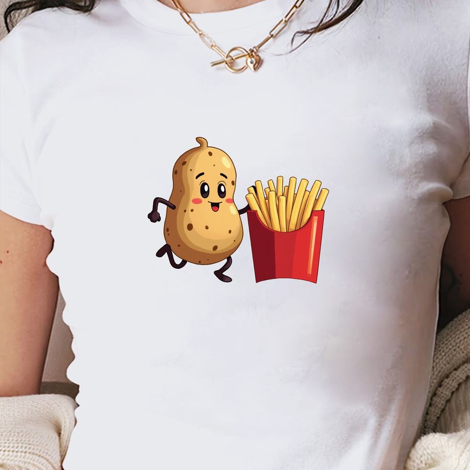 เสื้อยืดแขนสั้นแฟชั่นสไตล์ Y2K สำหรับผู้หญิงเสื้อยืดทรงสลิมฟิตผ้าถักลายการ์ตูนวิ่งมันฝรั่ง