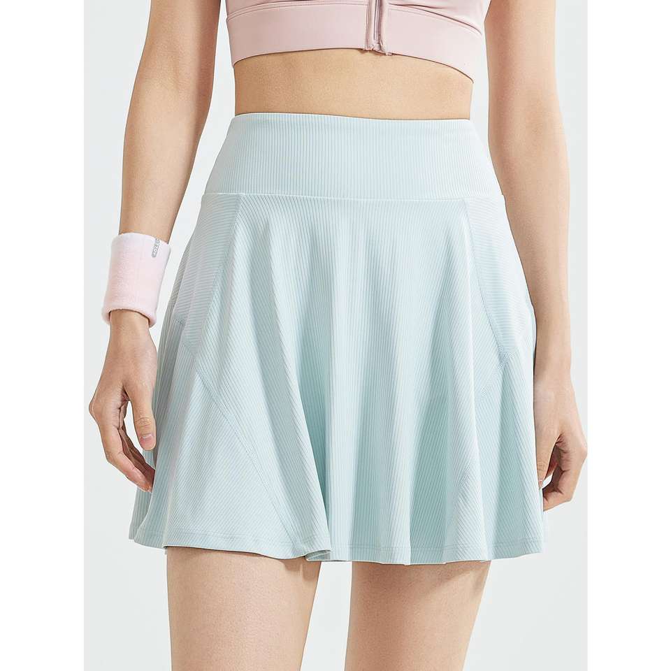 กระโปรงสั้นกีฬาวิ่งกระโปรงเทนนิสเอวสูงสองชิ้นปลอมชิ้นเดียวสำหรับผู้หญิง