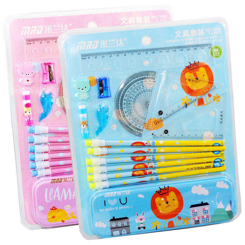 Runnjoy ชุดเครื่องเขียนสำหรับเด็กนักเรียนประถม15ชุดอุปกรณ์สำหรับเด็กนักเรียนชุดของขวัญเครื่องเขียน