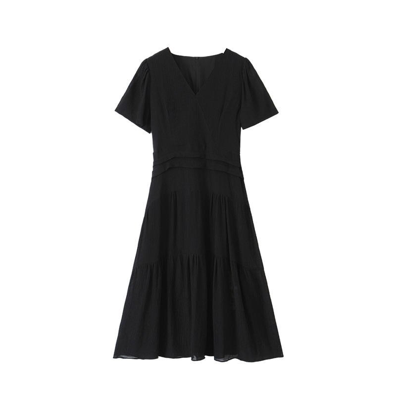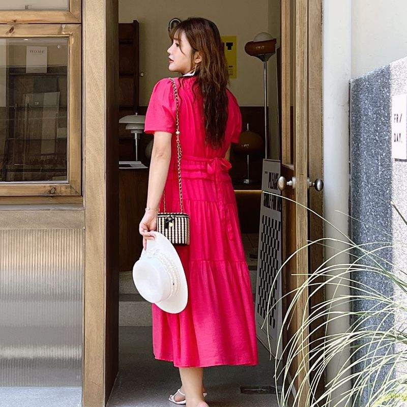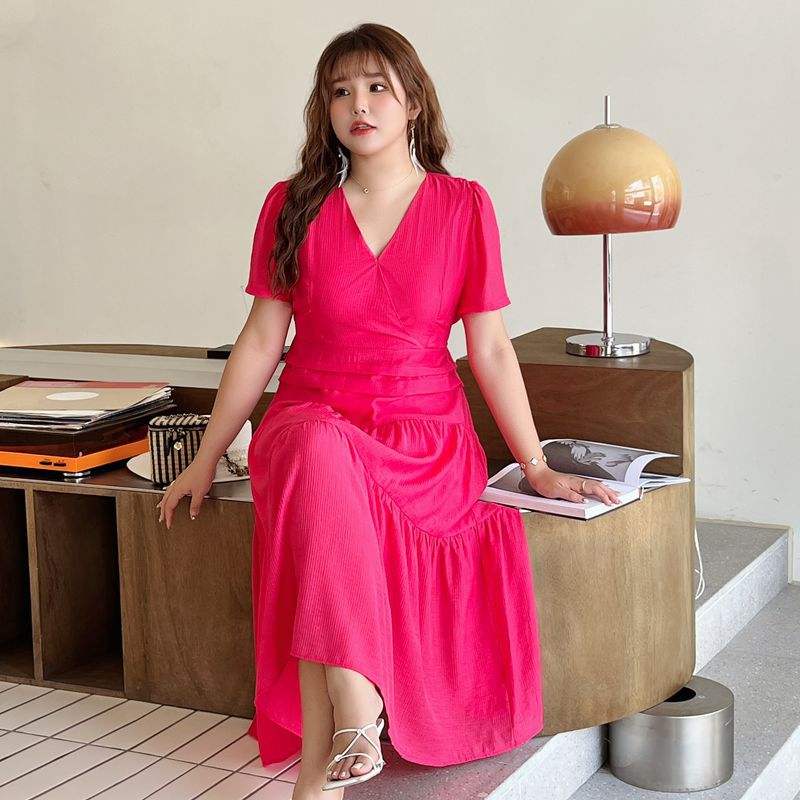 เดรสทรงเค้กคอวีสไตล์ฝรั่งเศส แบรนด์ Runqi ไซส์พลัส แขนสั้น ยาว ใส่ได้ทุกวัน ระบายอากาศดี สวมใส่สบาย