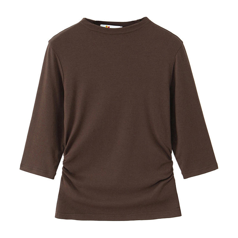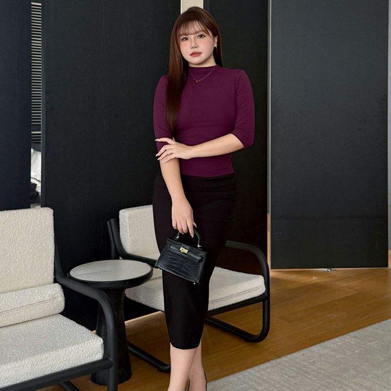 เสื้อถักแขนกลางรุ่น Runqi Modal รุ่น N9309 ไซส์พลัส คอสูงครึ่งตัว สีพื้น เสื้อผู้หญิง สไตล์ชิคสำหรับใส่ทำงานในฤดูใบไม้ร่วง