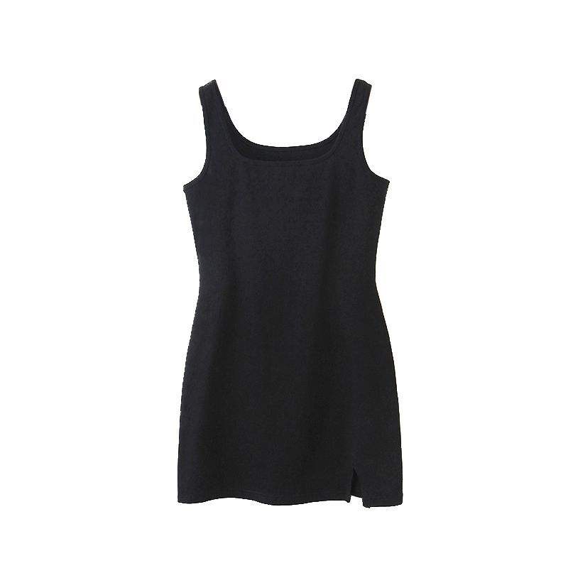เดรสสายเดี่ยวคอเหลี่ยมรัดเอว รุ่น Runqi N8480 ผ้าฝ้าย ไซส์พลัส สไตล์ลำลองสำหรับผู้หญิง ความยาวปานกลาง