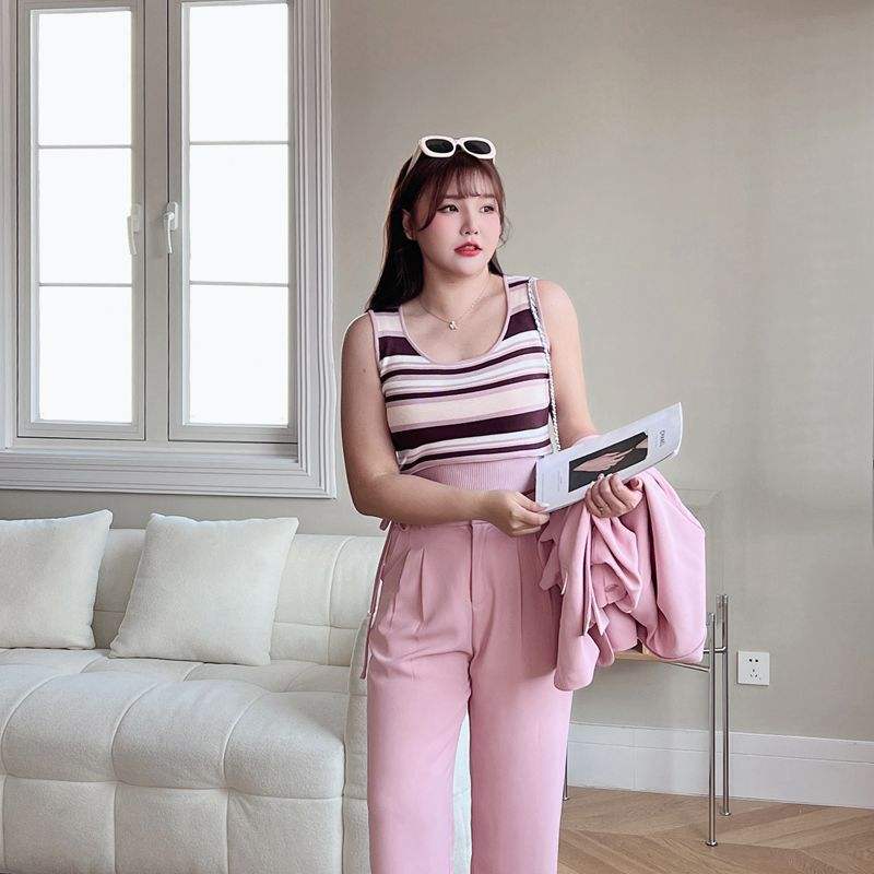 รันฉี เอ็น 8604 เสื้อชั้นในลายทางไซส์ใหญ่ สีฟ้า ความหนาปานกลาง โพลีเอสเตอร์ เสื้อชั้นในสตรี