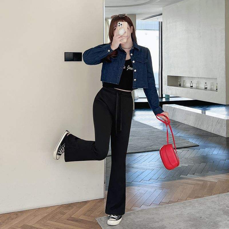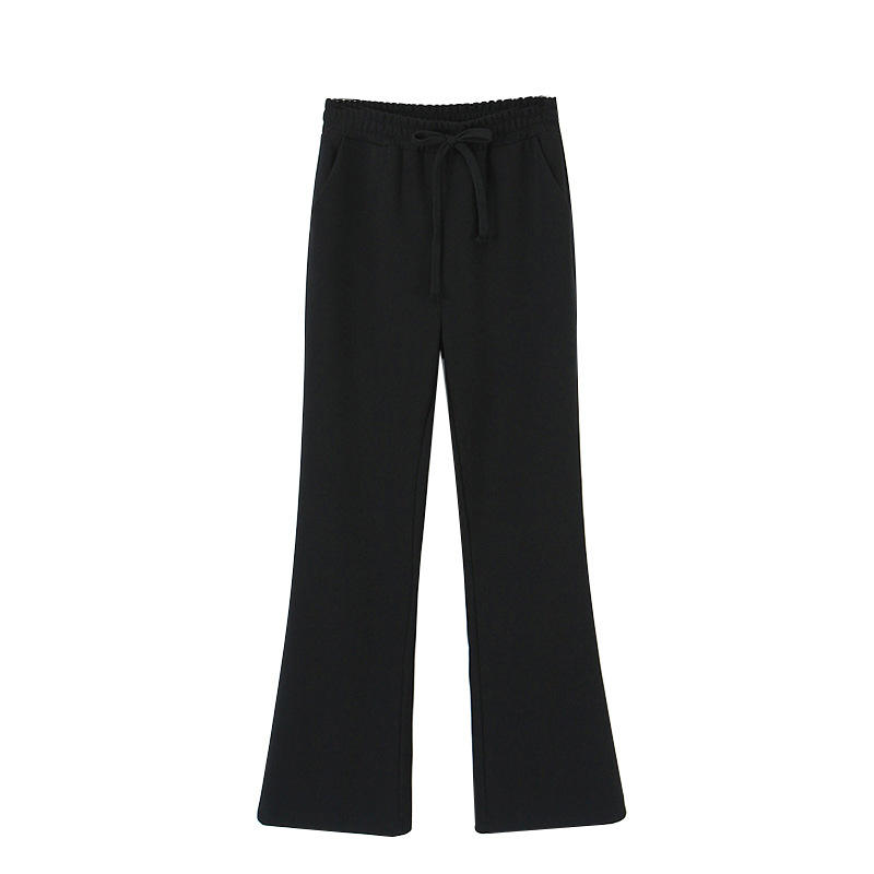 กางเกงแฟลร์ผู้หญิงไซส์ใหญ่ รุ่น Runqi N8658 สีดำ ผ้าเมมโมรี่ยืดหยุ่น เอวสูง ขากว้าง ไซส์ผู้ใหญ่