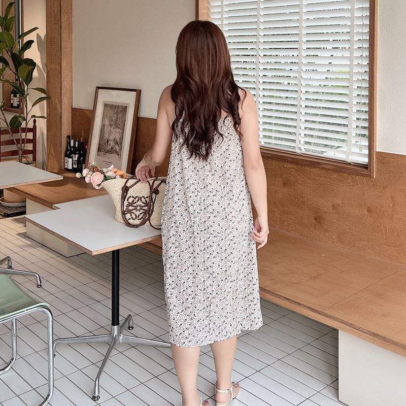 เดรสลายดอกไม้รันฉี N8662 ทรงหลวม สีขาว แต่งดอกไม้ สายเดี่ยว เอวต่ำ ไซส์พลัสสำหรับผู้หญิง