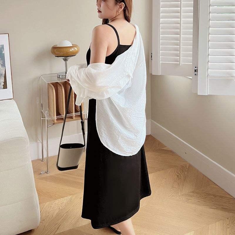 สี:เดรสสายเดี่ยวสีดำพร้อมเสื้อเชิ้ตสีขาว