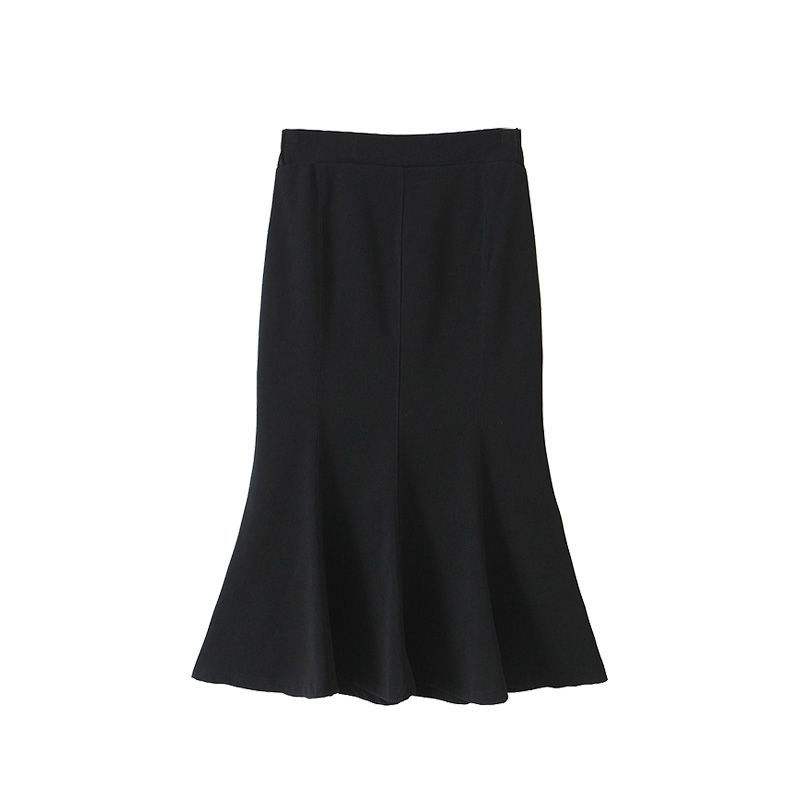 กระโปรงทรงเอเข้ารูปสีดำเอวสูงรุ่น Runqi N8757 สำหรับผู้หญิง ฤดูใบไม้ร่วง ฤดูหนาว สไตล์ OL กระโปรงยาวทรงหางปลา ไซส์ใหญ่