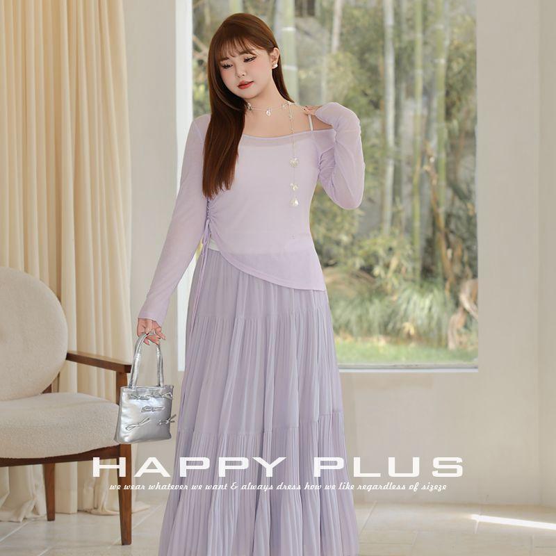 รันฉีพลัสไซส์กระโปรงแม็กซี่เอวสูงจับจีบผ้าชีฟองสีทึบสีม่วงชวนฝันชุดลำลองสำหรับผู้หญิงสำหรับวันหยุด