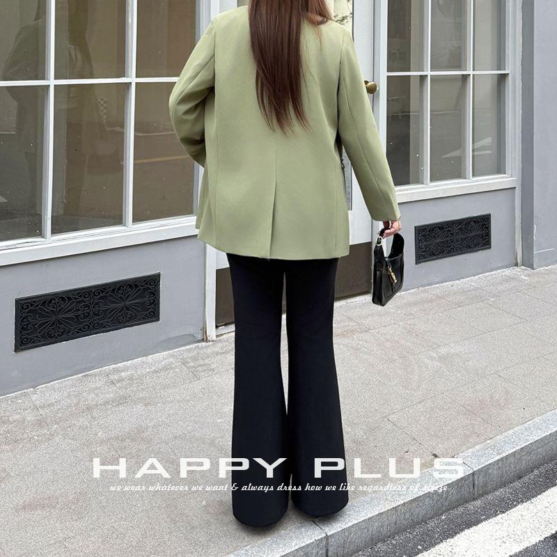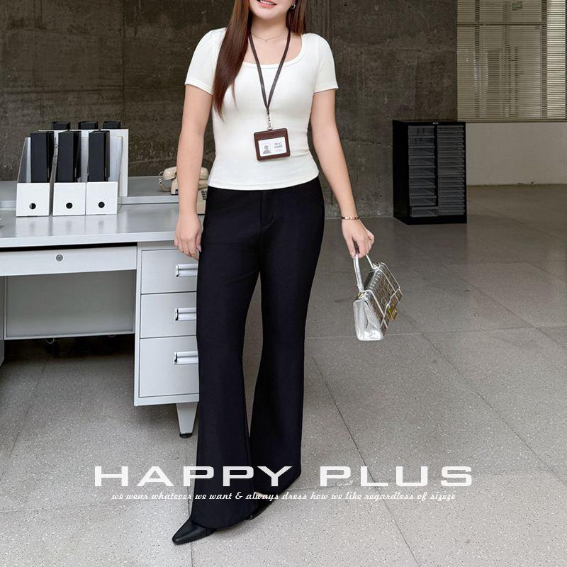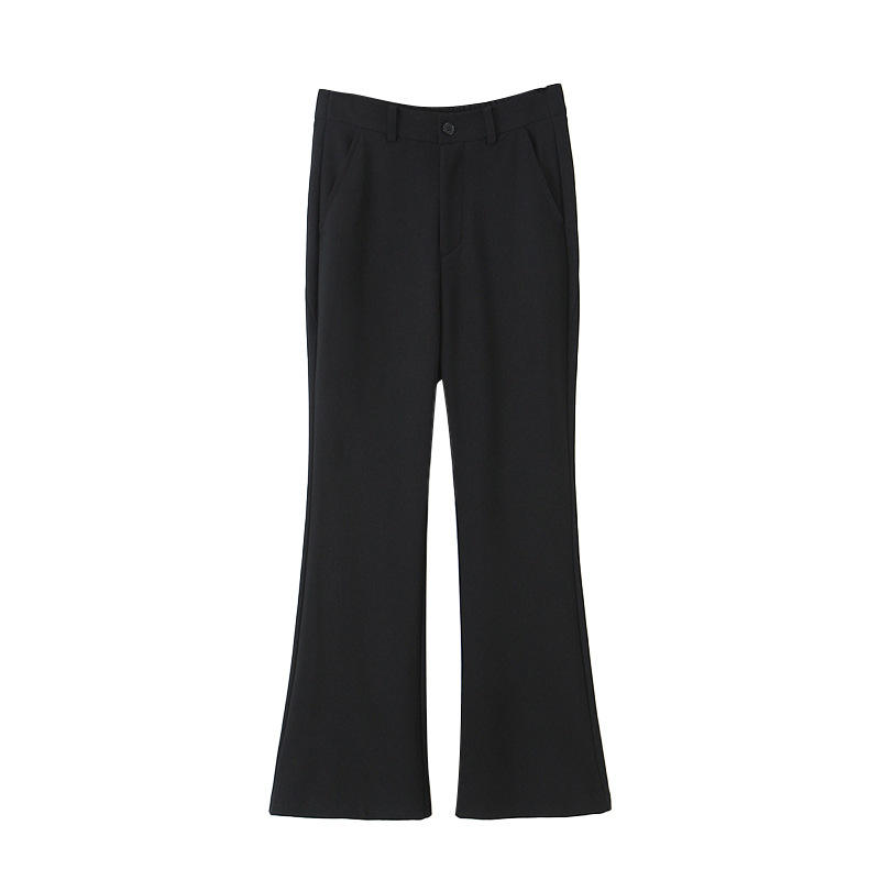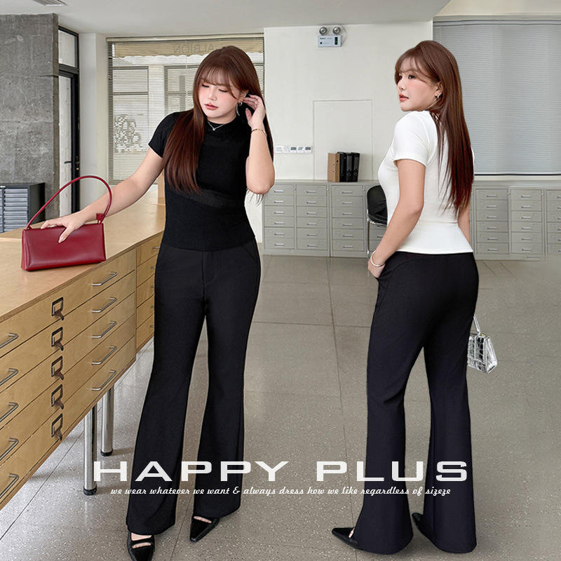 กางเกงสูทสีดำสำหรับผู้หญิงไซส์ใหญ่ รุ่น N9437 เอวสูง ทรงขาตรง ยืดหยุ่นเล็กน้อย ดีไซน์ขาบาน สไตล์ฤดูใบไม้ผลิ