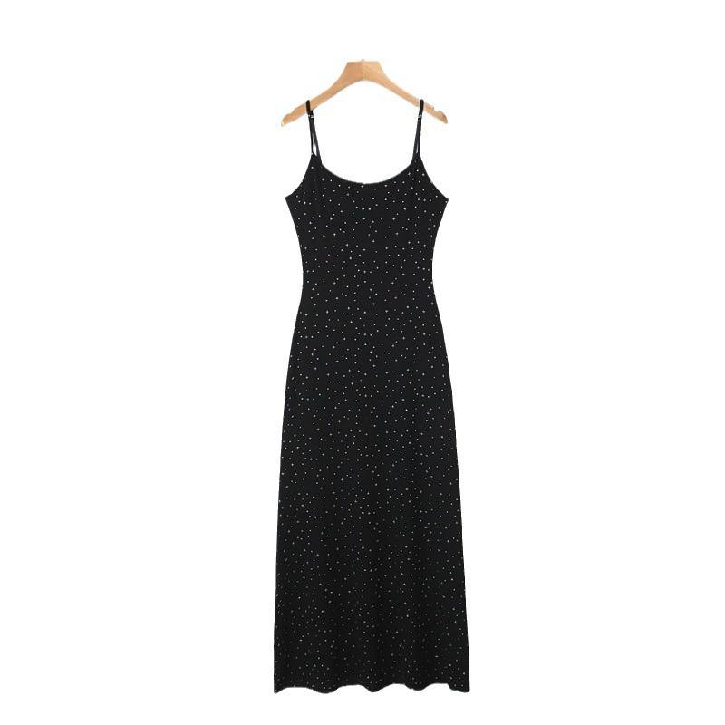 เดรสชีฟองรัดรูปไซส์ใหญ่สำหรับผู้หญิง รุ่น Runqi ลายจุดกลิตเตอร์ แขนกุด สายเดี่ยว ยาวแบบแม็กซี่