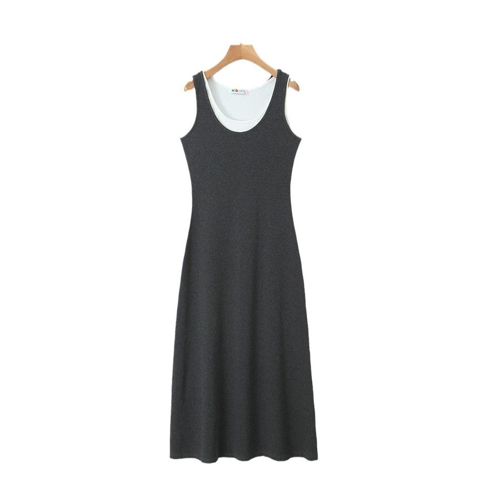 รันฉี ชุดเดรสไหมพรมแบบสองชิ้นสำหรับผู้หญิงไซส์ใหญ่ คอวี ทรงเข้ารูป สีพื้น สีดำ สีเทา รุ่น N8981