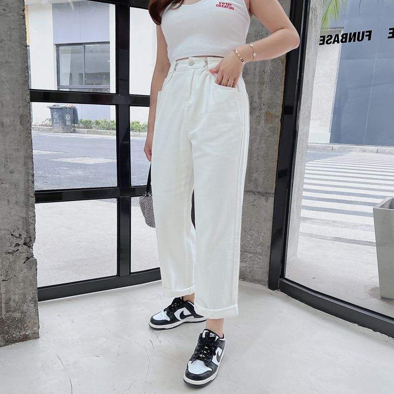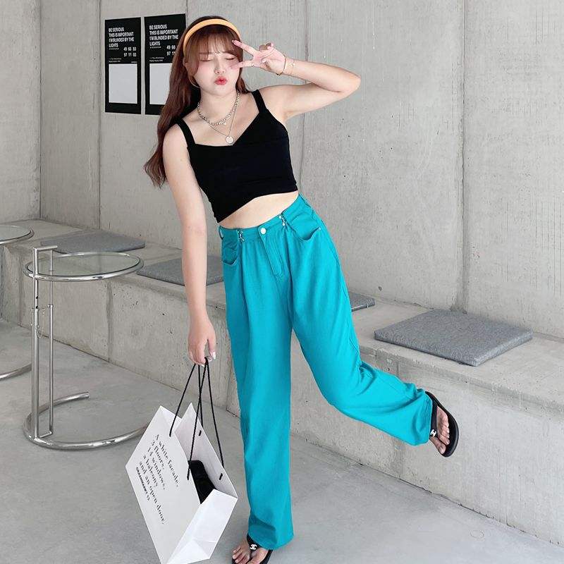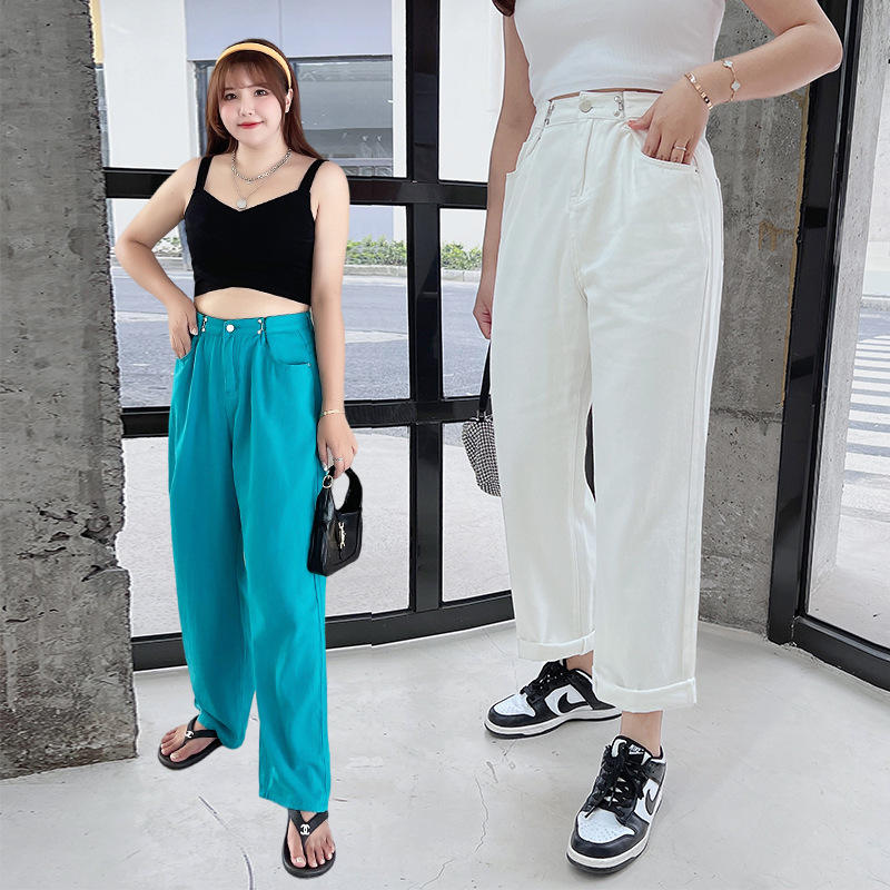 Runqi กางเกงขาตรงเอวสูงสำหรับผู้หญิงขนาดใหญ่พิเศษ N8117ระบายอากาศผ้าฝ้ายสีฟ้า