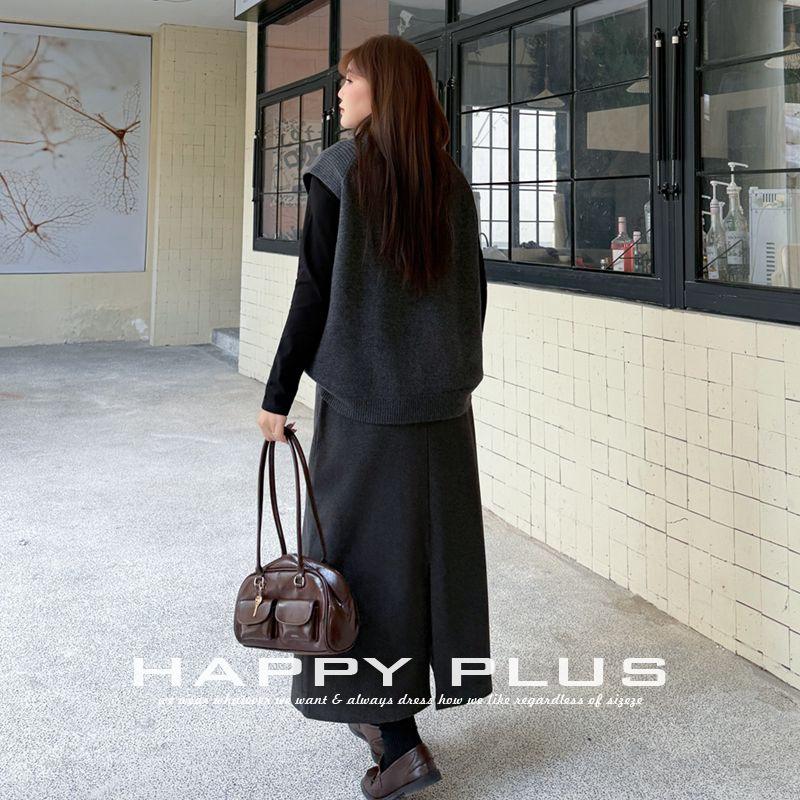 รันฉีเสื้อกั๊กถักไหมพรมผู้หญิงไซส์ใหญ่ สีเทาเข้ม รุ่น N9282 ทรงหลวม แฟชั่นทันสมัย