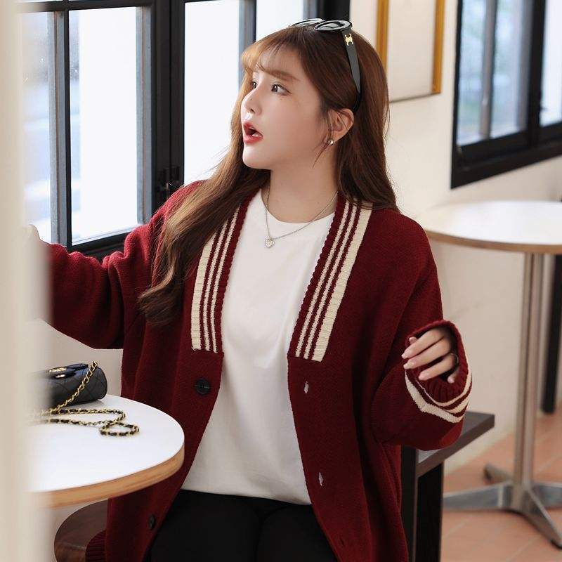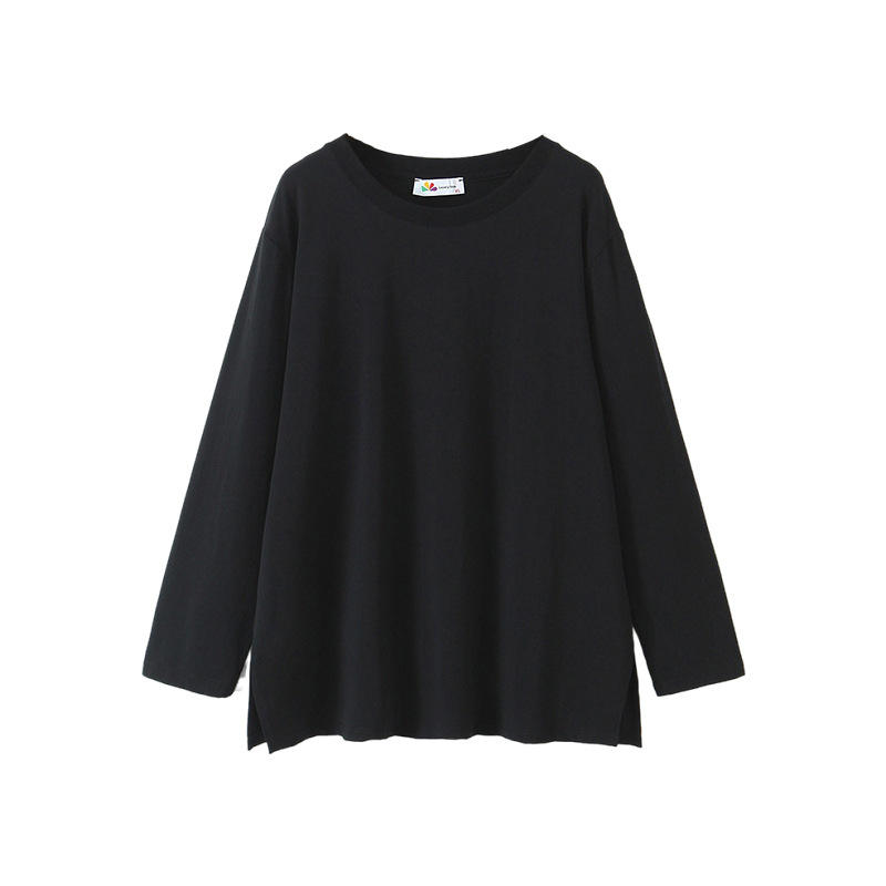รันฉีเสื้อยืดแขนยาวผู้หญิงไซส์ใหญ่ สีพื้น ผ้าถัก ทรงหลวม มีป้าย N8763