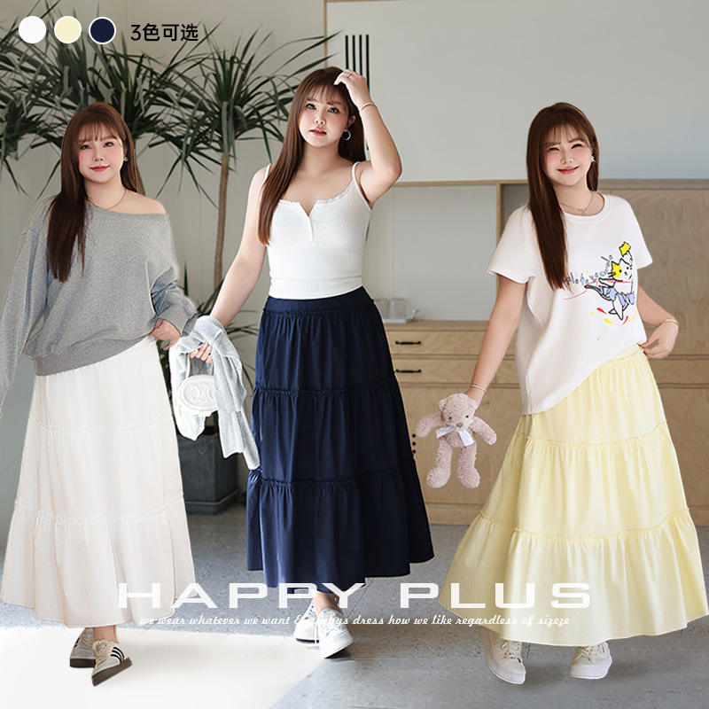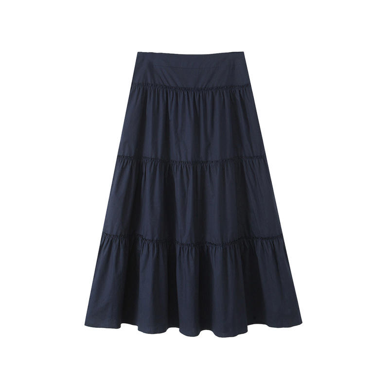รันฉี กระโปรงทรงเอไลน์สีกรมท่าสำหรับผู้หญิงไซส์พลัส กระโปรงมิดิทรงเค้กเอวธรรมชาติสีพื้นผ้าฝ้าย รุ่น N9151