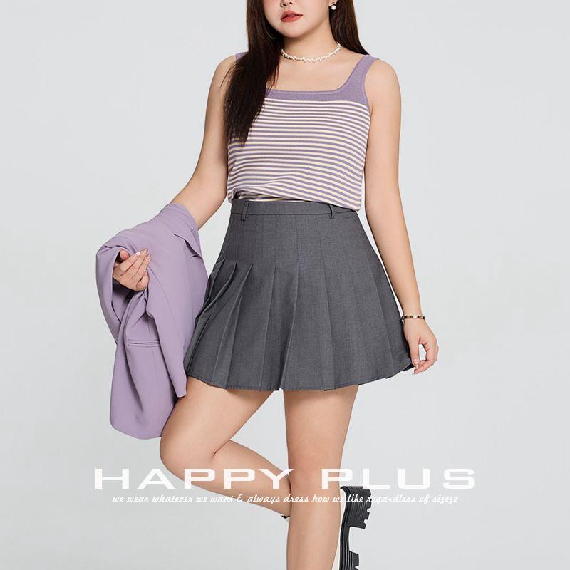 ชุดสูทสีม่วงหมอก กระโปรงจับจีบสีเทา เสื้อกั๊กถักลายทางสีม่วง