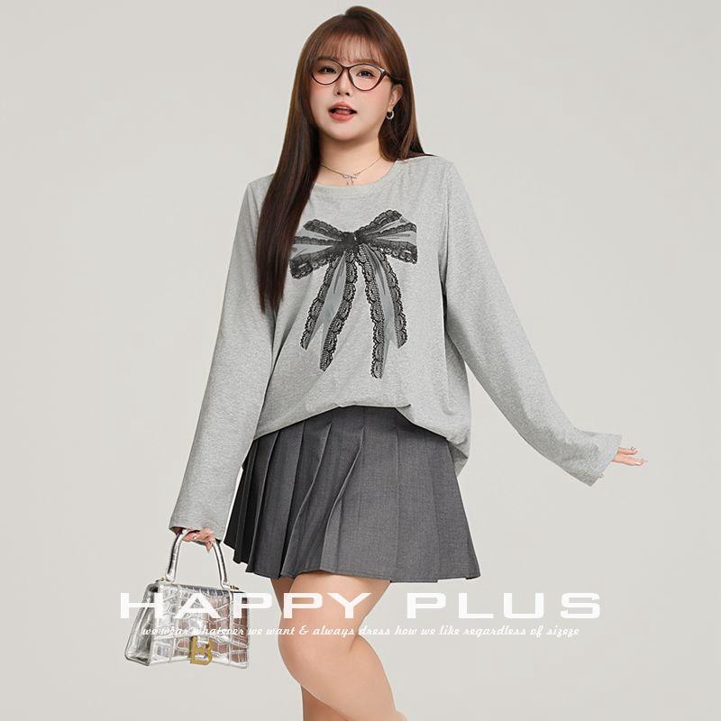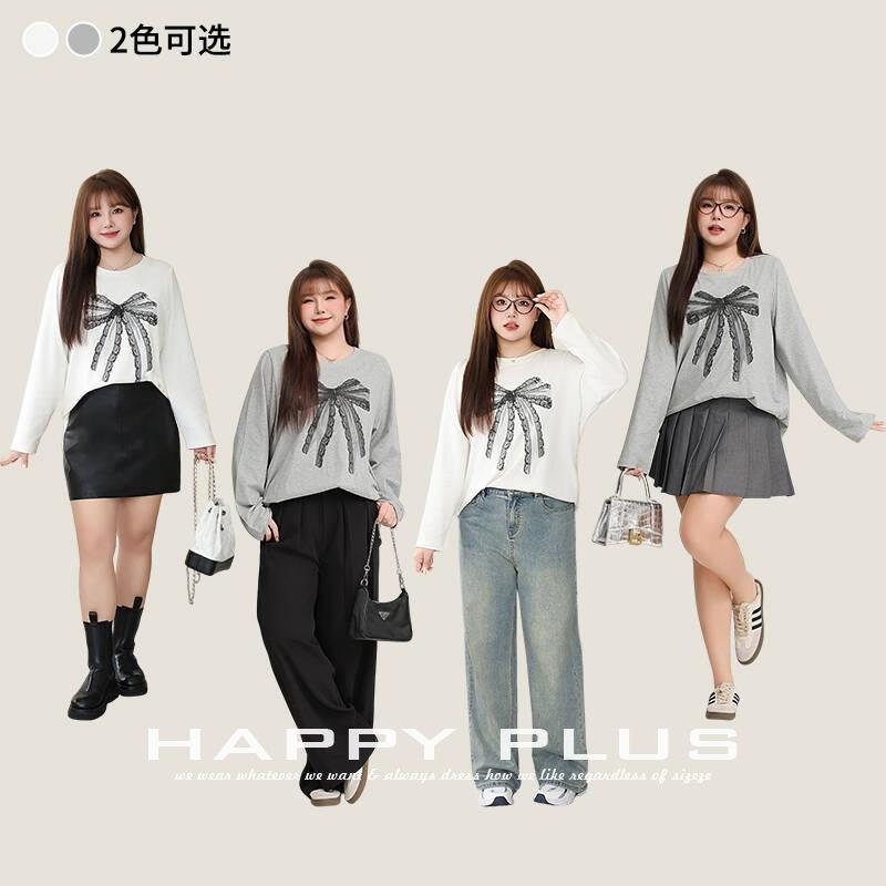 Runqi เสื้อยืดแขนยาวพิมพ์ลายโบว์สีขาวสำหรับผู้หญิงขนาดใหญ่พิเศษเสื้อ N9093ลำลองแบบถัก