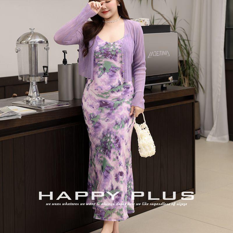 เดรสสายเดี่ยวทรงปลายหางปลาพิมพ์ลายดอกไม้สีม่วง Runqi คอวี สำหรับผู้หญิงไซส์พลัส ชุดราตรี เอวธรรมชาติ ตัดเย็บแบบไบแอสคัท