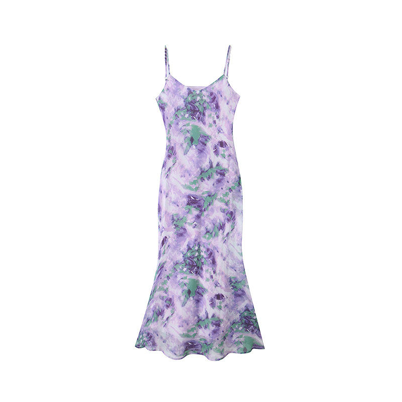 เลือกเลยColor: เดรสสายเดี่ยวลายภาพวาดสีน้ำมัน Monet สีม่วง