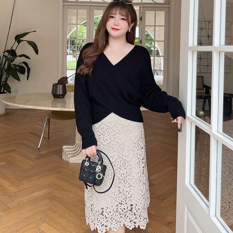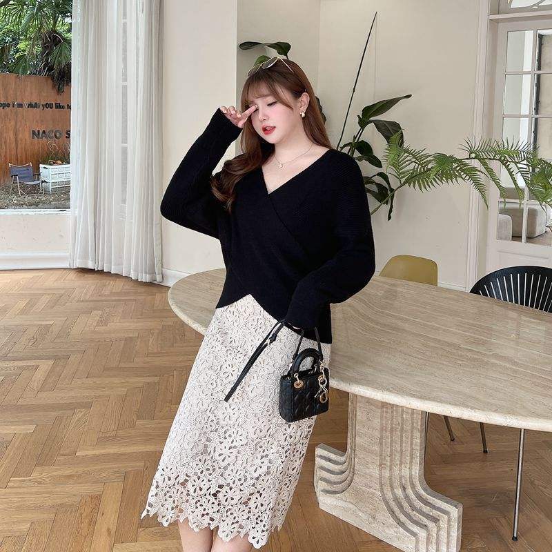 Runqi กระโปรงลูกไม้ถักสำหรับผู้หญิง, กระโปรง N8493เอวธรรมชาติยืดหยุ่นขนาดเล็กแอปริคอท