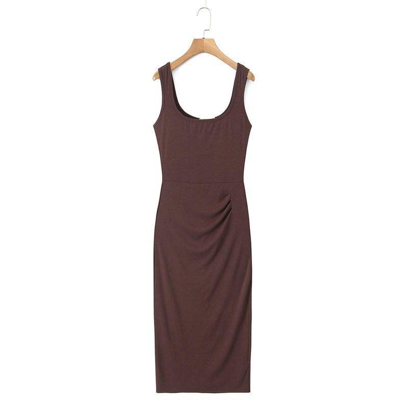 เดรสไหมพรมคอเหลี่ยมทรงเข้ารูป รุ่น Runqi แต่งจีบเอว สีพื้น ไซส์ใหญ่ สวมใส่สบายทุกวัน รุ่น N9249