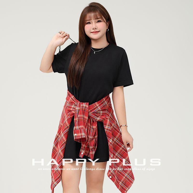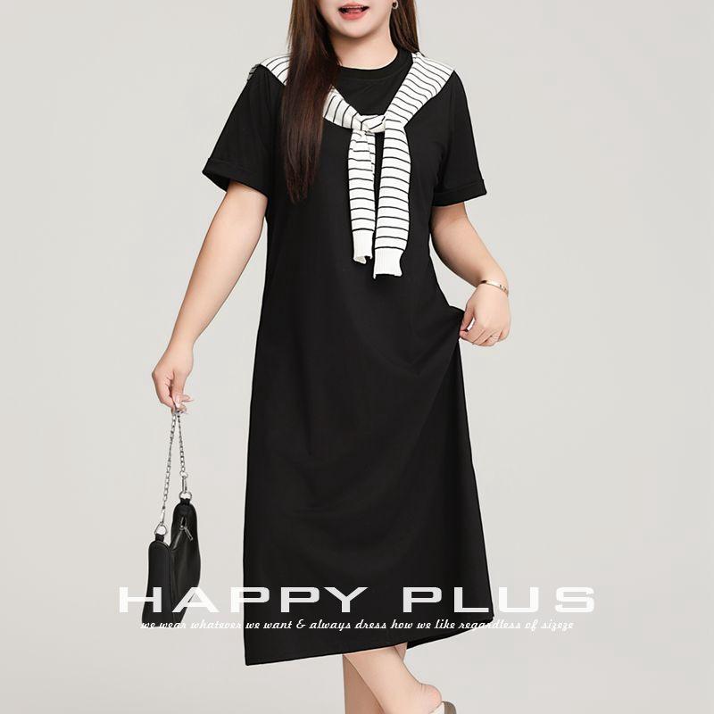 เดรสเสื้อยืดรันฉี คอกลม ทรงหลวม สีดำ ยาว/สั้น ไซส์พลัส ชุดลำลองสำหรับผู้หญิง สวมใส่ได้ทุกวัน
