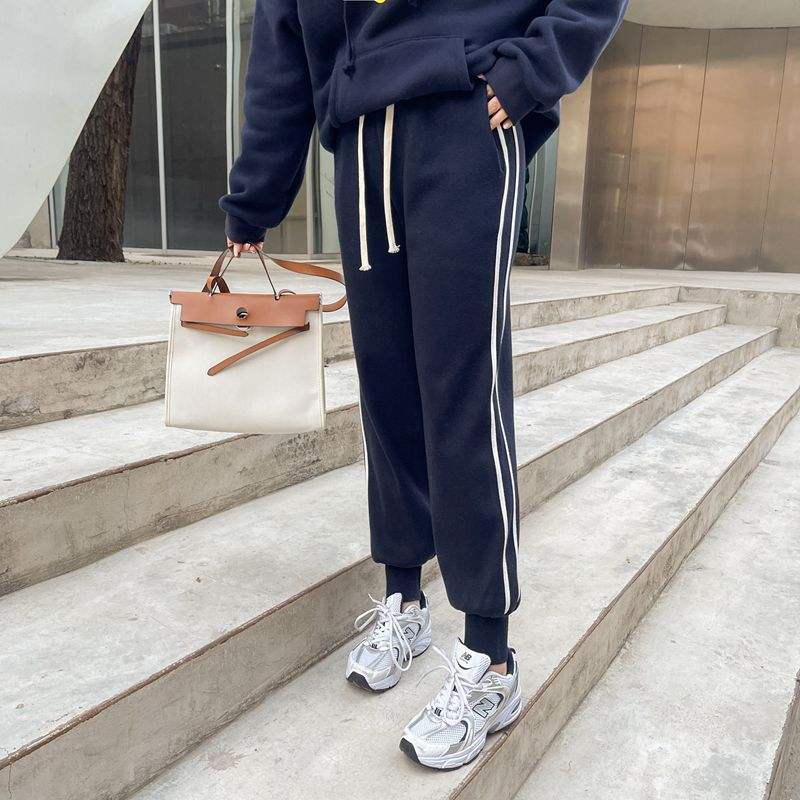 กางเกงวอร์มทรงเรียวรันฉีสีกรมท่าขนาดพลัสไซส์สำหรับฤดูใบไม้ร่วงและฤดูหนาว กางเกงลำลองสำหรับผู้หญิง รุ่น N8254