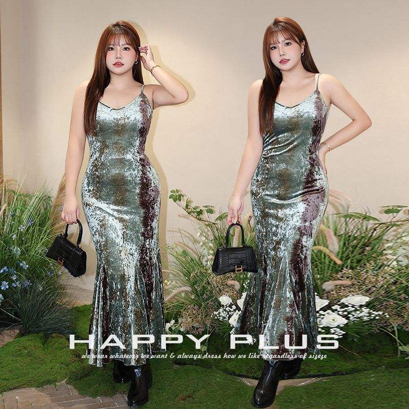 ชุดเดรสกำมะหยี่รันชีสีเขียวแบบแอบสแตรกของผู้หญิงชุดเดรสกำมะหยี่ N9058ขนาดใหญ่พิเศษพิมพ์ลายนางเงือก