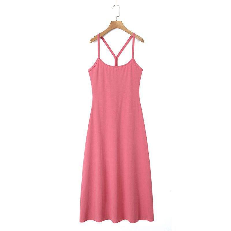 รันฉีชุดเดรสลำลองสำหรับผู้หญิง ทรงเอไลน์ สายไขว้หลัง สีชมพูเบอร์รี่ ผ้าฝ้ายเนื้อแน่น ใส่ได้ทุกวัน ไซส์พลัส รุ่น N8953