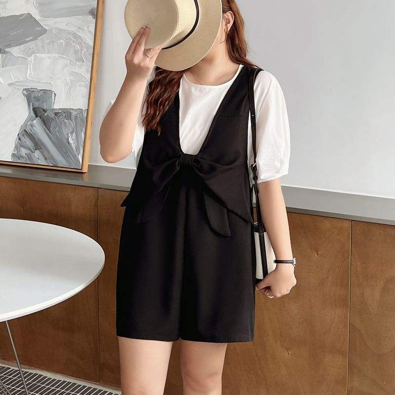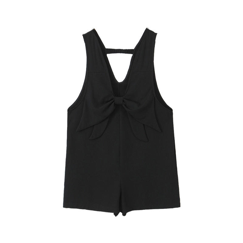 เสื้อกล้ามถักสีดำสำหรับผู้หญิงรุ่นรันฉีพร้อมดีเทลโบว์ N8648 พลัสไซส์ทรงหลวม