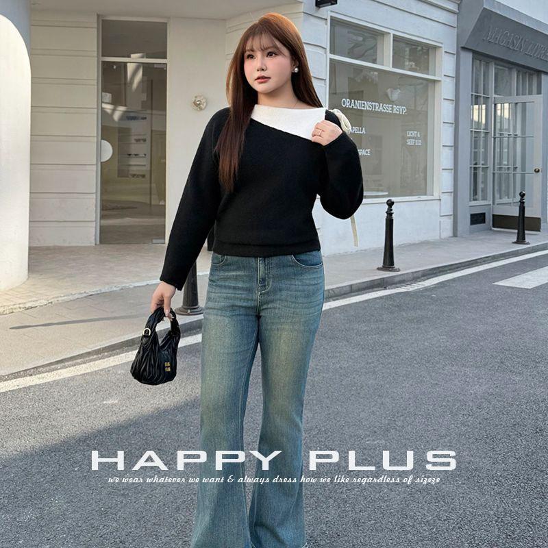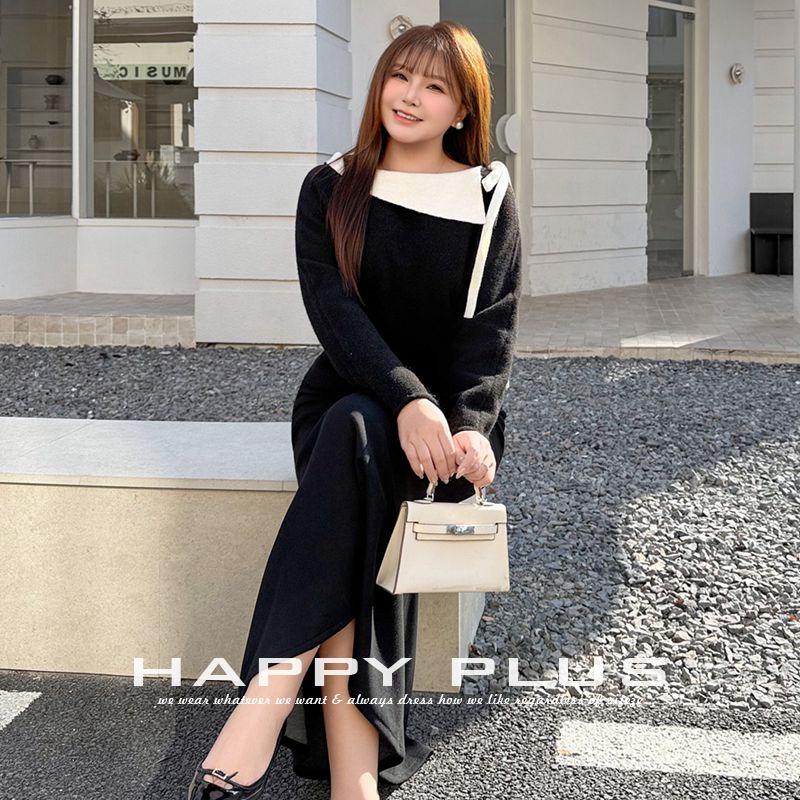 เสื้อสเวตเตอร์ถักคอปกผูกโบว์สีตัดต่อสำหรับผู้หญิง รันฉี ไซส์พลัส สำหรับฤดูใบไม้ร่วงและฤดูหนาว แขนยาว ป้องกันขนร่วง