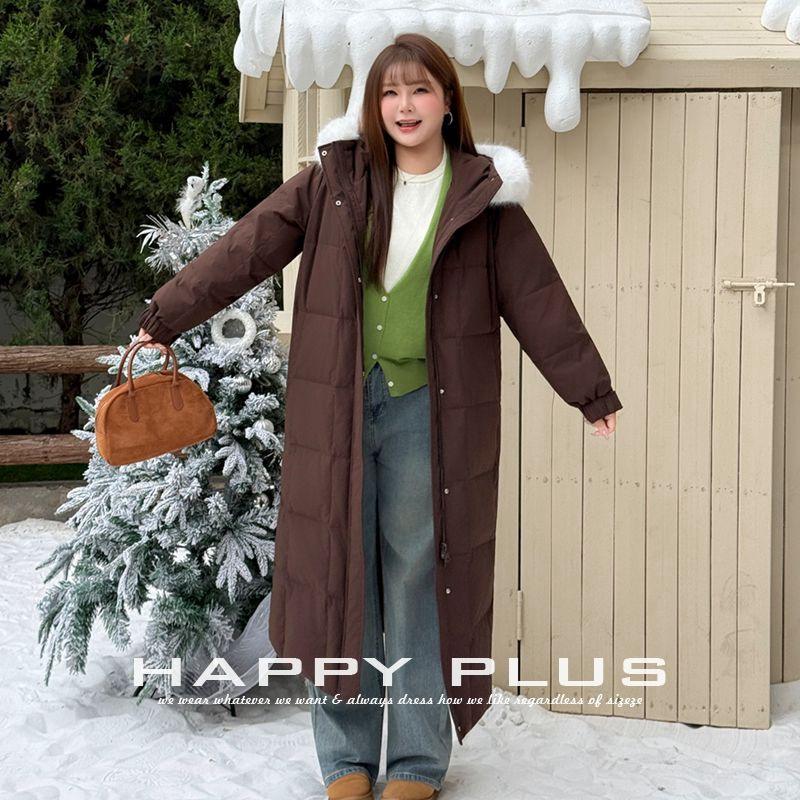 เสื้อโค้ทขนเป็ดสำหรับผู้หญิง Runqi พร้อมฮู้ดขนสัตว์ถอดออกได้ เสื้อแจ็คเก็ตฤดูหนาวสีน้ำตาลยาว ไซส์ใหญ่ สีพื้น เสื้อคลุมกันหนาวสำหรับอากาศหนาวเย็น